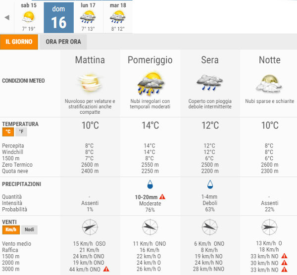 La temperatura massima registrata sembra sarà di 14°C e la minima di 10°C.