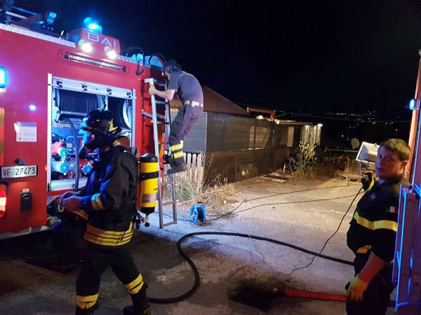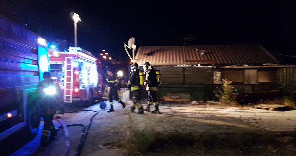 Il prefabbricato non sembra essere abitato e pare non risulti coinvolta nessuna persona.