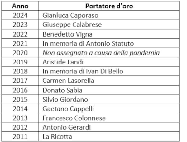 Di seguito l’elenco di tutti i vincitori del Portatore d’Oro dal 2011 ad oggi: