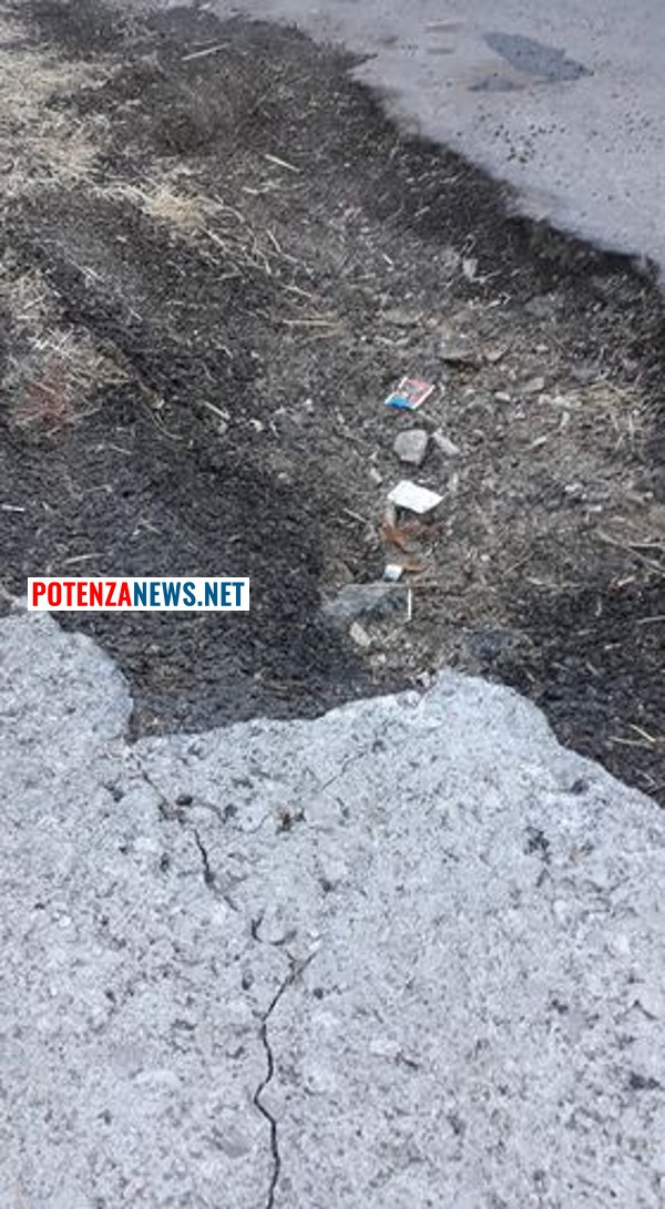“Il tratto viario è interessato da una profonda spaccatura del manto stradale a ridosso di una piccola cunetta, in salita.