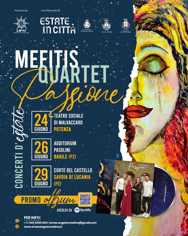 L’evento sarà inoltre l’occasione per annunciare la tournée nazionale e internazionale che vedrà il Mefitis Quartet protagonista nel 2025, portando la propria arte e il nuovo album Passione sui palcoscenici di prestigiosi festival e teatri.