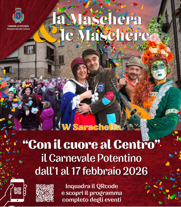 A Potenza il foyer del teatro Stabile, in piazza Mario Pagano, farà da cornice martedì 20 gennaio 2026, alle ore 16, alla conferenza stampa di presentazione di ‘La Maschera & le Maschere – Con il cuore al Centro, il Carnevale Potentino dall’1 al 17 febbraio’.
