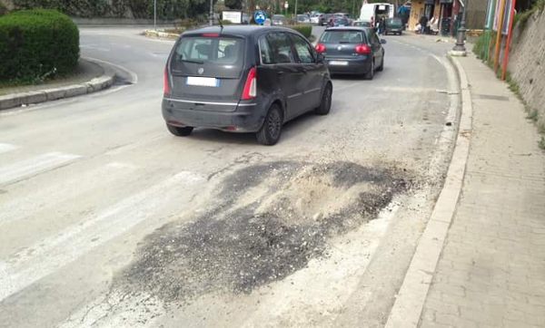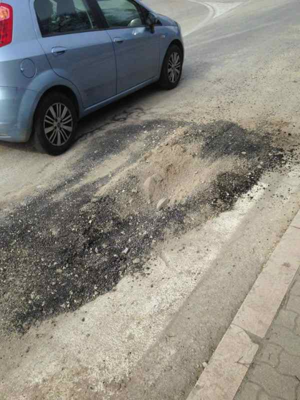 Il manto stradale asfaltato è stato distrutto per effettuare i lavori sulle tubature interrate e poi non è stato ripristinato in maniera adeguata.