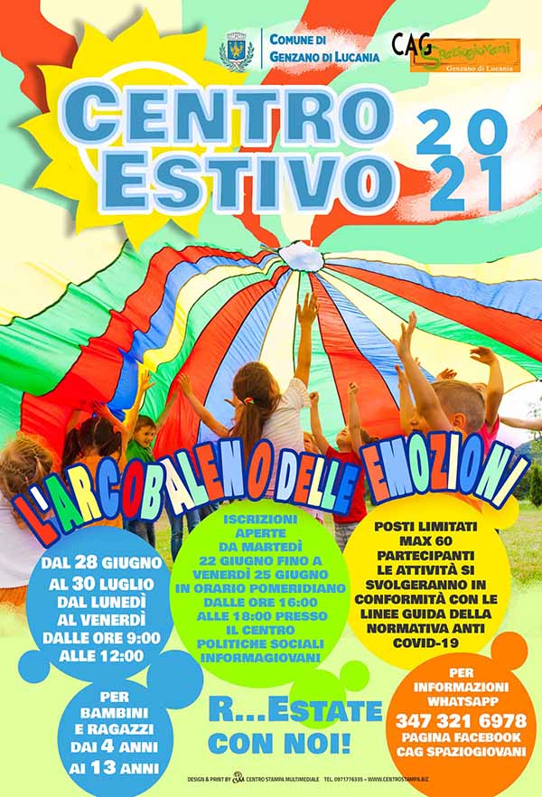 Il centro estivo 2021, ‘L’ARCOBALENO DELLE EMOZIONI’ è sia un progetto ludico e ricreativo che una occasione di crescita e di sostegno alla genitorialità”.