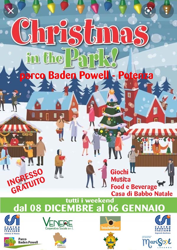 Christmas in the Park è organizzato dalla Cooperativa Venere, in collaborazione con tutte le Associazioni che operano all’interno del Parco Baden Powell e che negli anni hanno contribuito a renderlo un contenitore culturale e sociale, fondamentale punto di incontro e scambio tra generazioni.