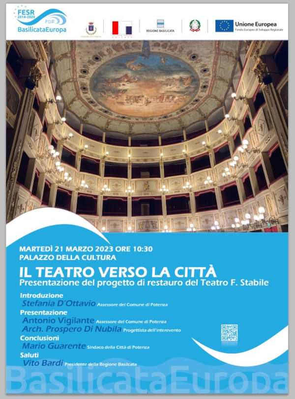 Si terrà Martedì 21 Marzo, alle ore 10:30, nel Palazzo della Cultura a Potenza, in via Cesare Battisti n. 22, la presentazione del progetto di restauro del teatro Stabile, ‘Il Teatro verso la Città’.