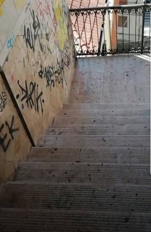 Pochi giorni fa, abbiamo portato alla luce il malcontento dei residenti che sottolineavano l’assenza di qualsiasi forma di manutenzione della zona: tra sporcizia, calcinacci caduti e gradini pericolanti, non era raro vedere escrementi e abiti abbandonati, segni di frequentazioni poco raccomandabili.