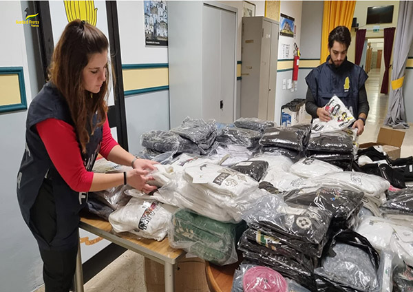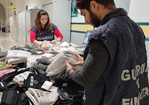 Il tempestivo intervento dei militari ha permesso di rinvenire all’interno dei contenitori di cartone, a seguito dei necessari riscontri, un’elevata quantità di capi di abbigliamento, accessori vari ed etichette di noti marchi dell’alta moda, risultati contraffatti.