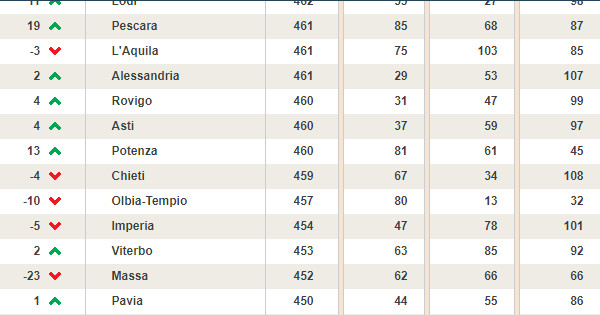 Questa la classifica generale del Sole 24 Ore in cui figurano i dati di Potenza.