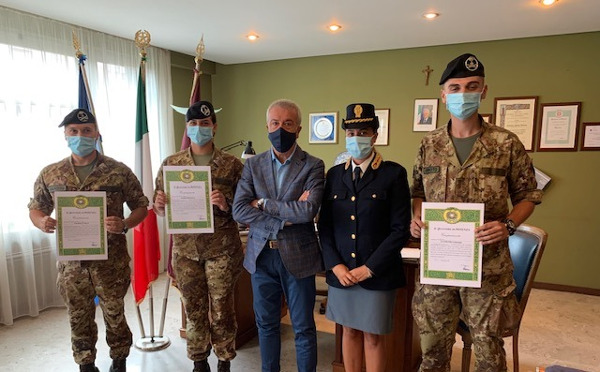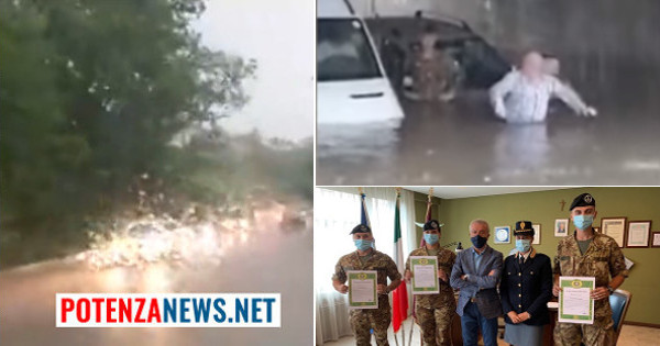Con questa motivazione il Questore di Potenza Antonino Pietro Romeo ha consegnato oggi una nota di compiacimento ai tre militari dell’esercito, in forza al Raggruppamento “Puglia e Basilicata”, il Caporal Maggiore Capo Giovanni TURCO, il Caporal Maggiore Giulia SPINGOLA e l’Artigliere Giuseppe LA PIETRA, che lo scorso 4 agosto, hanno soccorso gli occupanti di due mezzi bloccati in un sottopasso allagatosi a causa delle improvvise precipitazioni torrenziali che avevano colpito il capoluogo potentino.