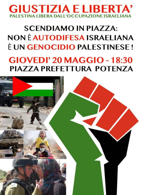 Il 20 Maggio 2021 alle ore 18:30 la Rete degli Studenti Medi sarà in Piazza Mario Pagano a Potenza insieme a varie associazioni con l’obbiettivo di informare e sensibilizzare sulla questione israelo-palestinese:
