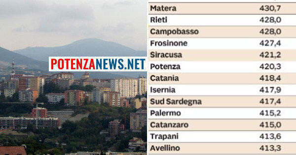 Questa la classifica generale del Sole 24 Ore in cui figurano i dati di Potenza.