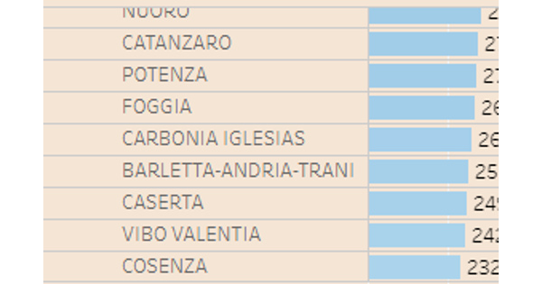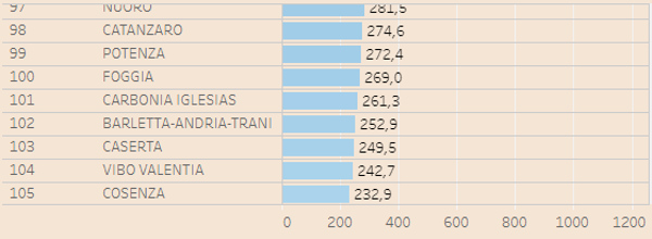 Continua a crescere il divario tra Nord e Sud, infatti sul podio sono salite Trieste, Trento e Livorno.
