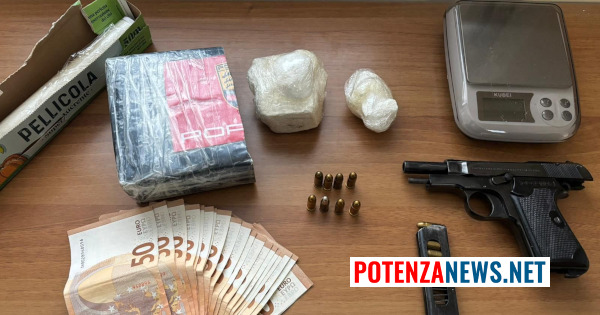 Nel corso della perquisizione, sono stati rinvenuti circa 150 grammi di cocaina, una pistola calibro 7.65 con matricola abrasa, completa di caricatore con munizioni, ulteriori proiettili, una bilancia di precisione e materiale utilizzato per il confezionamento della sostanza stupefacente.