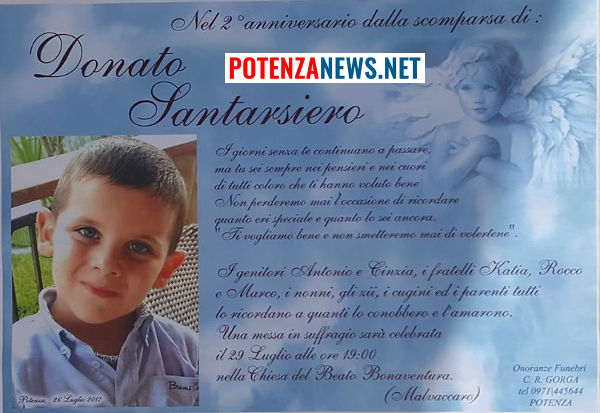 Sono passati due anni, ma Potenza non ha dimenticato e mai dimenticherà il sorriso del piccolo Donato Santarsiero.