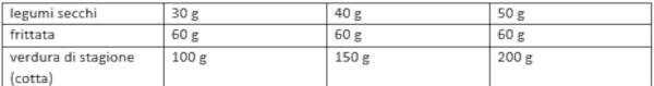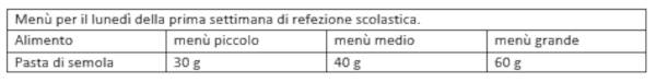 Per rispondere alla prima domanda prendiamo in esame le tabelle nutrizionali adottate del comune di Potenza (prot. 18279 del 24/02/2021), ci sono tre menù: piccolo, medio e grande.