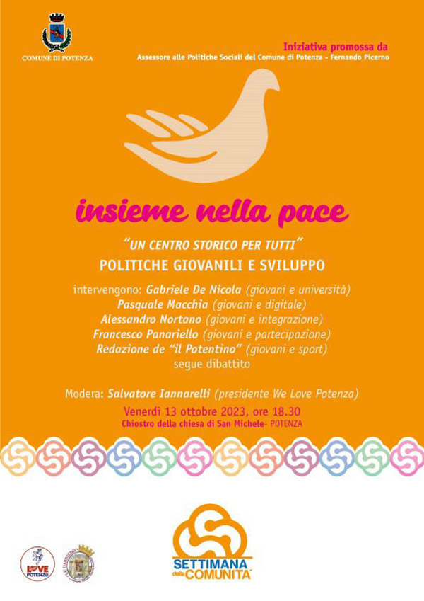 Ponendo l’accento su temi di stringente attualità, Salvatore Iannarelli, presidente del Movimento d’impegno civico We Love Potenza, invita tutta la cittadinanza presso il cortile degli absidi della Chiesa di San Michele per il prossimo venerdì 13 ottobre, alle ore 18:30 in occasione dell’incontro-dibattito “Politiche giovanili e sviluppo”.