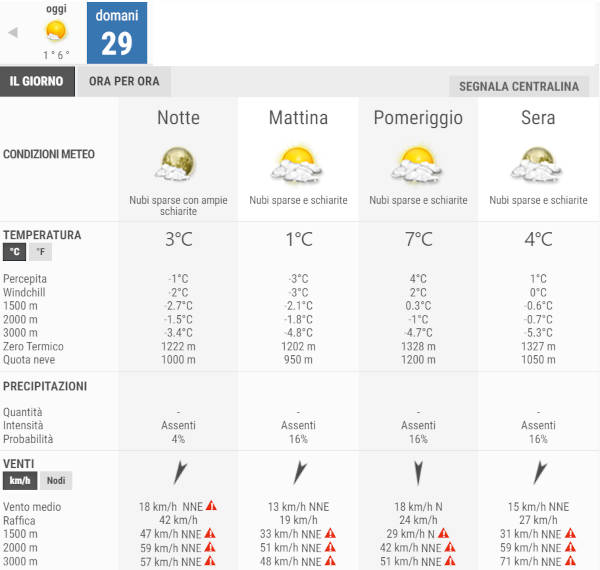La temperatura massima registrata pare che sarà di 7°C, la minima di 1°C.