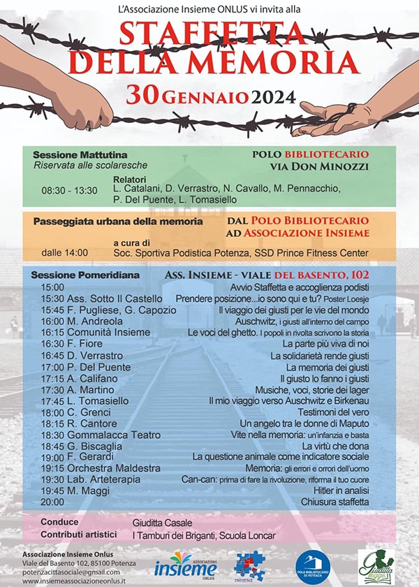 Al via la sesta edizione della Staffetta della Memoria organizzata dall’associazione “Insieme Onlus” che si terrà a Potenza il 30 Gennaio.