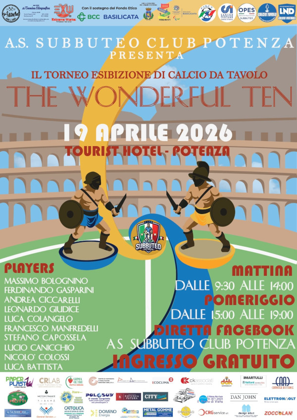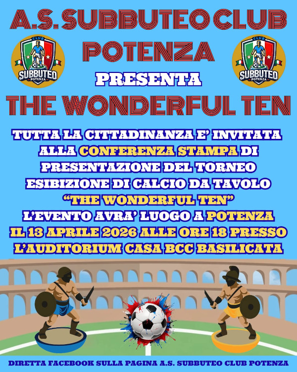 Potenza si prepara ad alzare il sipario su “The Wonderful Ten”, il prestigioso torneo di calcio da tavolo che domenica 19 aprile 2026 porterà nel capoluogo lucano alcuni dei nomi più importanti del panorama italiano.