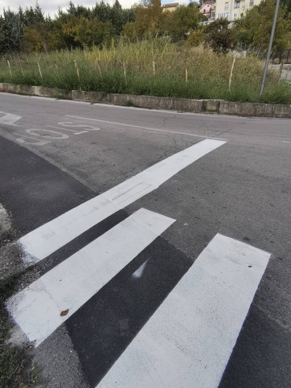 -si stanno realizzando interventi di ripristino parziali della segnaletica stradale che interessano gli attraversamenti pedonali, stalli auto, linee di separazione carreggiate e segnali di circolazione. Si segnalano interventi che non rispettano le norme di sicurezza del codice della strada poiché la segnaletica orizzontale deve essere continua ed omogenea se non ripristinata completamente si rischia di disorientare gli utenti creando situazioni di pericolo per la circolazione cittadina;