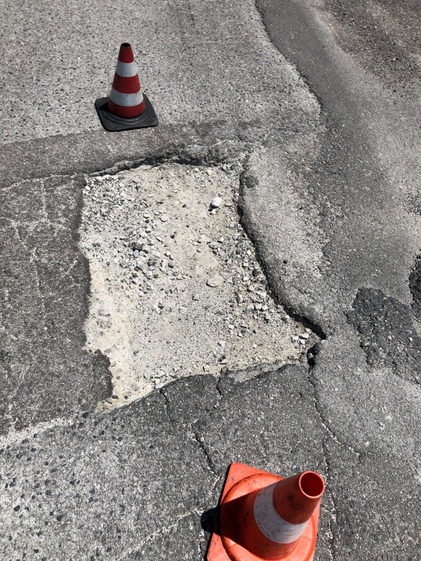 Il giorno 24/05/20 con la mia auto stavo transitando all’inizio di via Macchia San Luca (che in pratica è la strada subito dopo Bucaletto, che dalla  zona industriale porta alla frazione di San Luca Branca) e purtroppo per scansare una buca piu’ piccola finisco al centro della carreggiata dove c’era un’altra buca molto piu’ grande, una voragine che, oihmè, ho preso con la gomma sinistra ed ho irreparabilmente danneggiato il pneumatico.