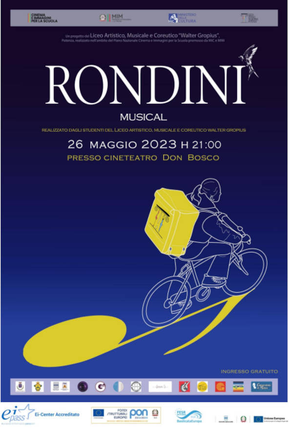 Un’adolescente con il sogno del canto, le geometrie della periferia potentina, i problemi lavorativi e le dinamiche familiari, sono questi alcuni dei temi del cortometraggio musical dal titolo Rondini che vedrà la sua prima nazionale gratuita presso il Cineteatro Don Bosco la sera del 26 maggio alle 21:00.
