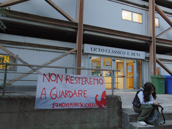Il giorno del 25 l’azione è stata rilanciata davanti le scuole di tutta la Regione, con striscioni e volantinaggi.
