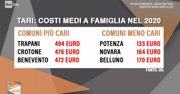 Ecco la tabella trasmessa dal programma firmato Rai.