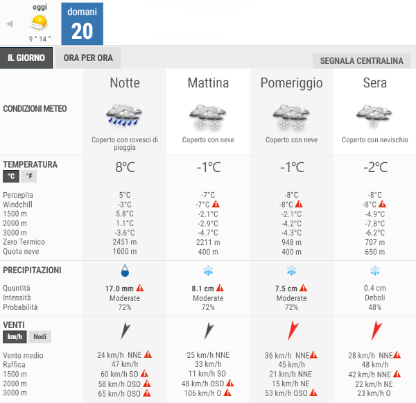 La temperatura massima registrata pare che sarà di 8°C, la minima di -2°C.