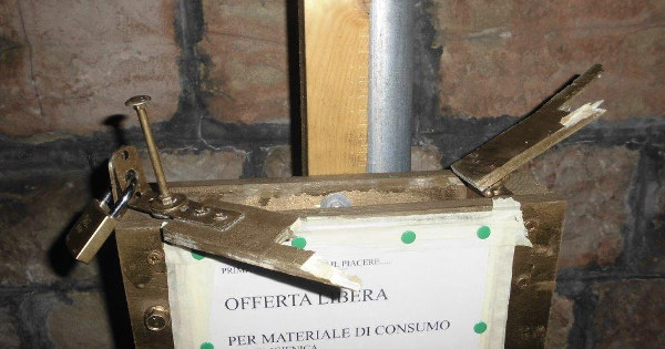 Oltre allo scasso della cassetta per le offerte hanno avuto il coraggio di rubare il contenuto pari a centesimi 22 che servono per l’acquisto di materiale di rifornimento generale (carta igienica, rotoloni, sapone lavamani e deodorante).