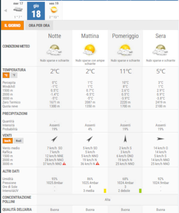 La temperatura registrata pare che sarà di 13°C la massima, la minima di 2°C.