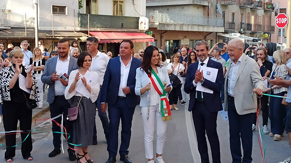 Dopo l’intervento del Sindaco Anna Scalise, del vicesindaco di Potenza Michele Napoli, e della Presidente regionale dell’ANDE Marianna Fanelli, si è proceduto al taglio del nastro per l’inaugurazione del percorso culturale “Ruoti Graphic Novel”.