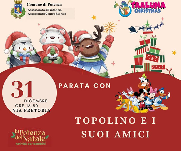 Il Comune di Potenza rende noto in proposito che oggi, 31 dicembre 2023, è in programma la Parata con topolino e i suoi amici per la gioia dei più piccoli.