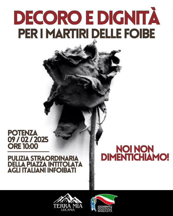 Quest’anno abbiamo voluto rendere onore ai nostri Martiri con un piccolo gesto di civiltà, affinché vengano ricordati onorevolmente ogni giorno e ricordati come Esempi di orgoglio e identità, contro ogni negazionismo e occultamento, contro ogni ideologia che distingue vittime di serie A e di serie B.