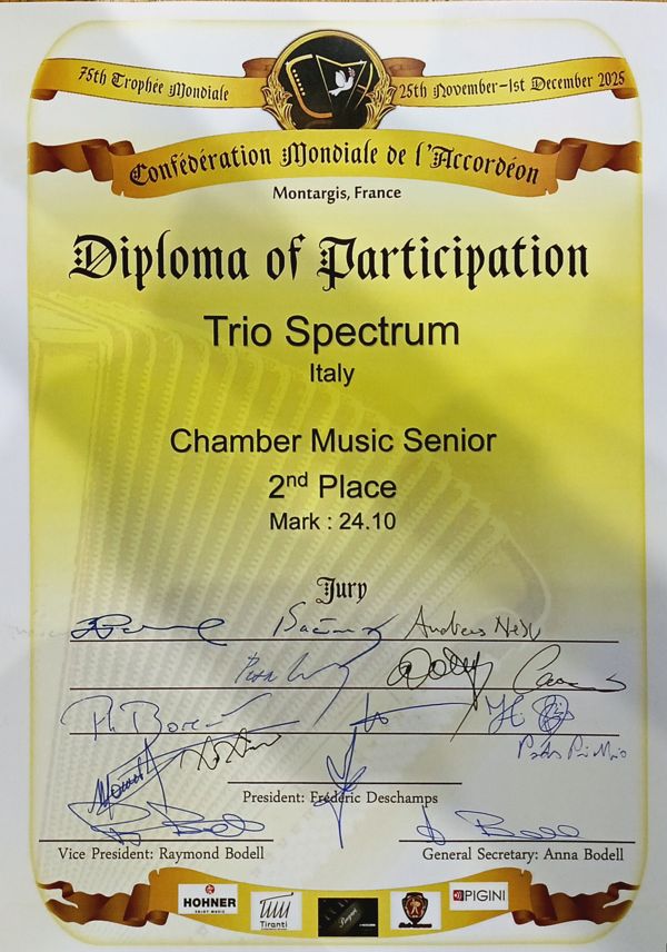 Il Trio Spectrum (trio di Bayan), studenti del Conservatorio Carlo Gesualdo da Venosa di Potenza, sotto la guida del Maestro Walter Di Girolamo porta a casa un importante successo.