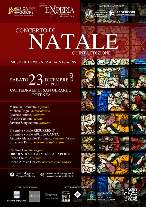 Con il patrocinio dell’Arcidiocesi di Potenza e della Regione Basilicata, l’hub artistico Musica Maggiore porta tra le mura della Cattedrale, un programma straordinario, scelto tra le pagine di musica di compositori quali Werner e Saint-Seans; un modo per augurare un buon Natale di Pace a tutti!