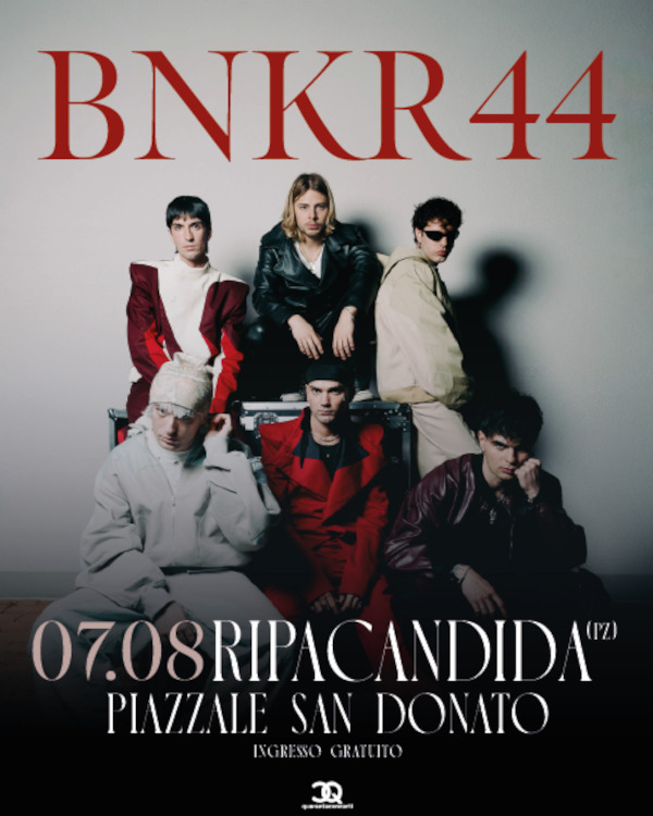 Il collettivo musicale toscano BNKR44 continuerà il suo “Tocca il cielo tour” con una serata live imperdibile il 7 agosto 2025 a Ripacandida nel Piazzale San Donato.