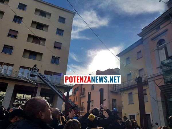 I Vigili del Fuoco poi, con un’autoscala, hanno simulato il soccorso alla Befana che, dal tetto del Teatro F. Stabile, è stata salvata e fatta scendere in Piazza Mario Pagano dove ha distribuito cammelli di pasta sfoglia e caramelle per tutti i bambini presenti, offerti dalla Pasticceria Caffetteria XVIII Agosto.