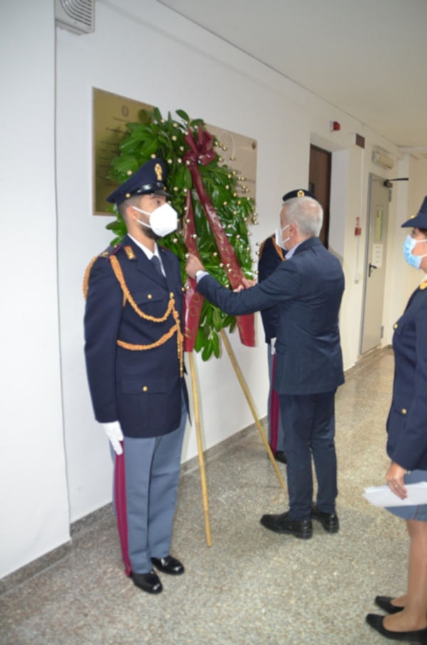 Una cerimonia breve ma solenne, per non dimenticare l’impegno, la dedizione e l’alto senso del dovere profusi “…fino all’estremo sacrificio della vita” – come recita la lapide a loro intitolata – dai poliziotti caduti in servizio “perché il loro ricordo sia per tutti noi monito efficace alla lealtà e alla concordia”.