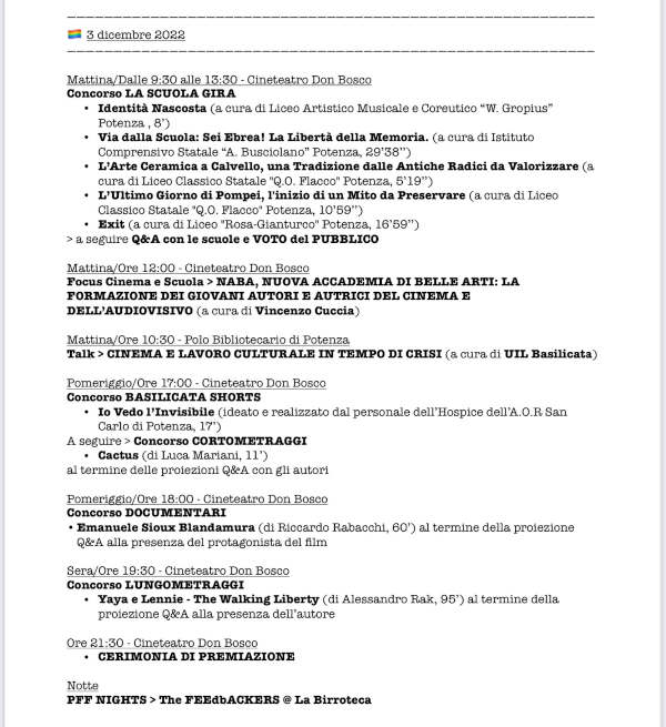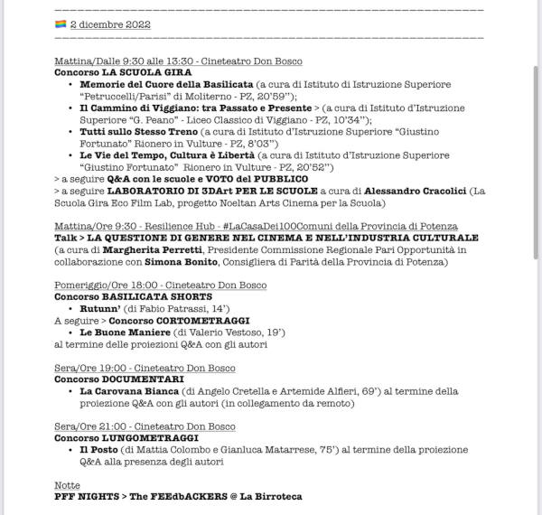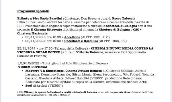 - il 2 dicembre: ‘La questione di genere nel cinema e nell’industria culturale’ presso l’Hub Resilience della Provincia di Potenza;