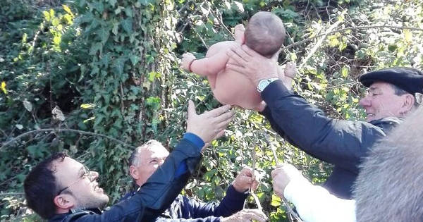 Terminato il rito i bambini vengono avvolti in una coperta e portati nella chiesa dell’Annunziata per essere rivestiti ai piedi dell’altare.