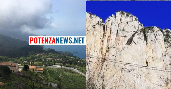 “In Basilicata stiamo trasportando in volo barriere paramassi lungo la SS18 località Acquafredda a Maratea per proteggere il costone roccioso”.