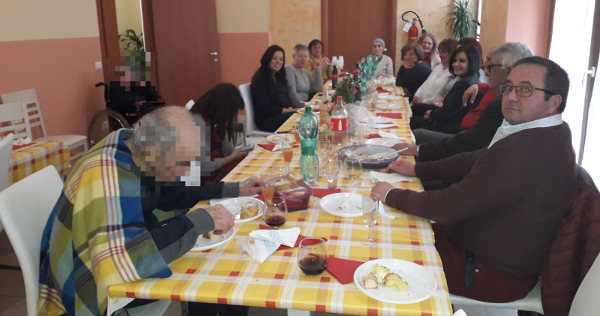 Insieme ai gestori e ai dipendenti della struttura si è voluta rispettare la tradizione anche nella realizzazione del menù: fusilli conditi con sugo agli involtini di cotica, patate al forno con salsiccia grassa, insalata e vari tipi di dolci preparati dai soci e dai dipendenti della casa di riposo.