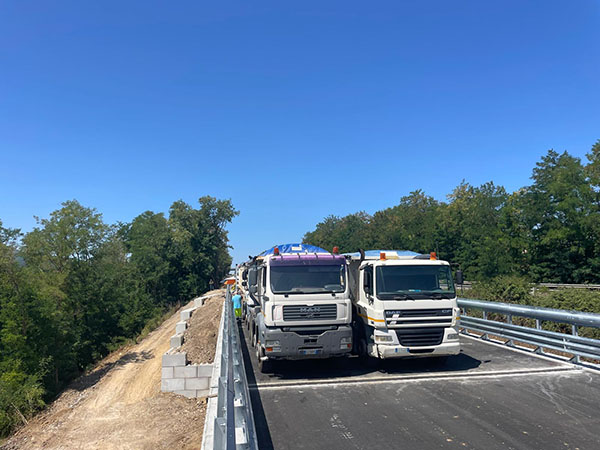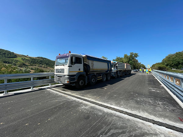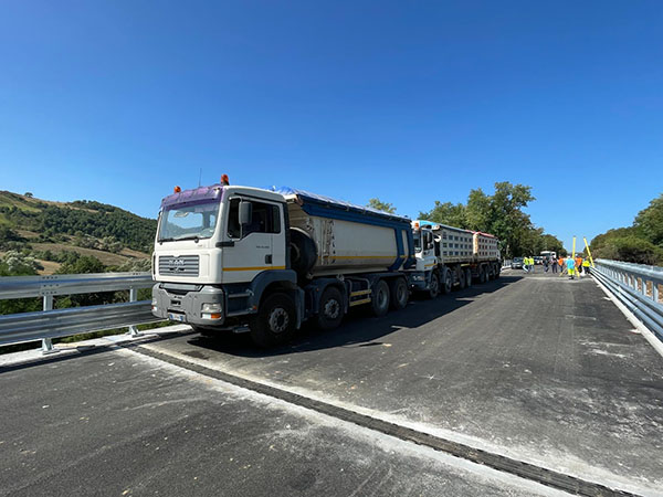 L’esecuzione di tali prove, conclusesi con esito positivo, era propedeutica alla apertura al transito di una corsia della nuova carreggiata sud del viadotto – per una lunghezza di circa 700 metri – che avverrà entro il prossimo Lunedì 5 Agosto, permettendo così l’eliminazione dell’attuale bypass per lo ”scambio di carreggiata” tra il km 41,200 ed il km 41,900, con conseguente fluidità della circolazione ed innalzamento degli standard di sicurezza e percorribilità della infrastruttura autostradale.