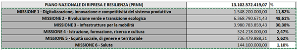 Grosse perplessità sorgono per le missioni 4 (Istruzione, ricerca e cultura), 5 (Equità sociale e di genere) e 6 (Salute) per le quali appare evidente l’esiguità degli stanziamenti.