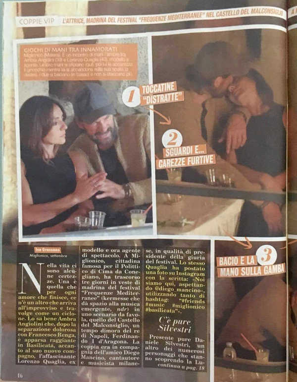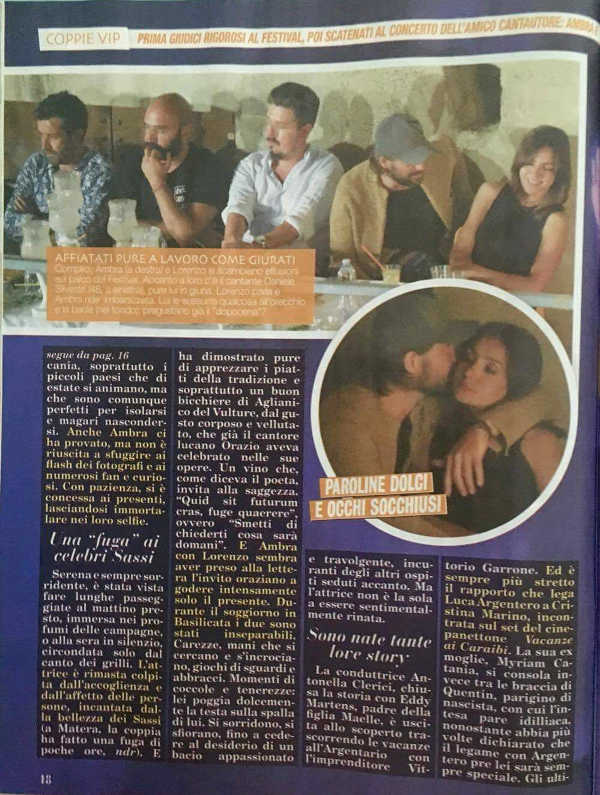 Il settimanale di Gossip “Top” due giorni fa ha riportato un servizio, firmato dalla giornalista lucana Isa Grassano, riferito alla vacanza in Basilicata (lo scorso fine Agosto) tra Ambra Angiolini e la sua nuova fiamma , il modello Lorenzo Quaglia.
