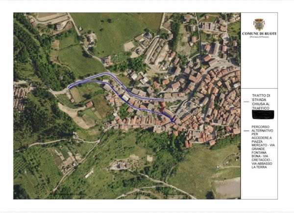 Il Comune di Ruoti informa che, a partire da Lunedì 23 febbraio 2026 dalle ore 07:00 fino a sabato 28 febbraio 2026 alle ore 17:00, sarà vietato il transito veicolare e pedonale sul tratto di strada comunale che da Via Appia conduce a Via Grande Fontana Bona.