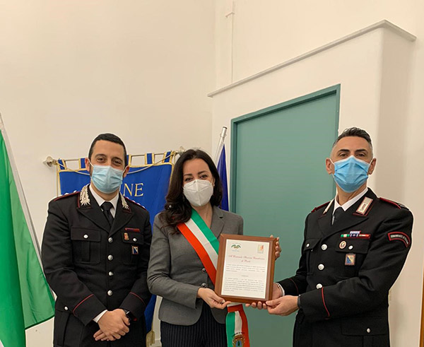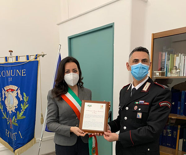 È stata consegnata stamani da parte del Sindaco Anna Maria Scalise, nel suo ufficio istituzionale, e alla presenza del Capitano della Compagnia dei Carabinieri di Potenza Alberto Calabria, nelle mani del Maresciallo Capo della Stazione dei Carabinieri di Ruoti (PZ) Pietro Lazazzara, la targa al Merito voluta dall’Unione Province d’Italia (UPI) e dall’ANCI Basilicata per ringraziare dell’importante lavoro e supporto che l’Arma dei Carabinieri ha dato nei confronti della comunità.