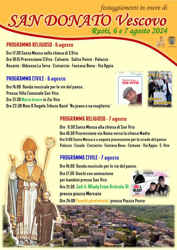 Tutto pronto a Ruoti per la festa in onore di San Donato, molto venerato in Basilicata e in particolare dai cittadini ruotesi.